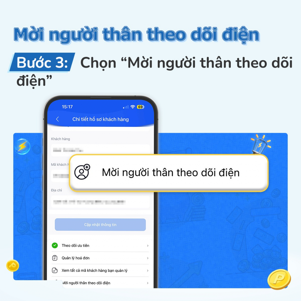 Việc mời người thân cùng theo dõi hợp đồng điện giúp kết nối mọi người trong gia đình. Mỗi người sẽ nhận thức rõ hơn về mức tiêu thụ điện và có thể đưa ra những điều chỉnh hợp lý.