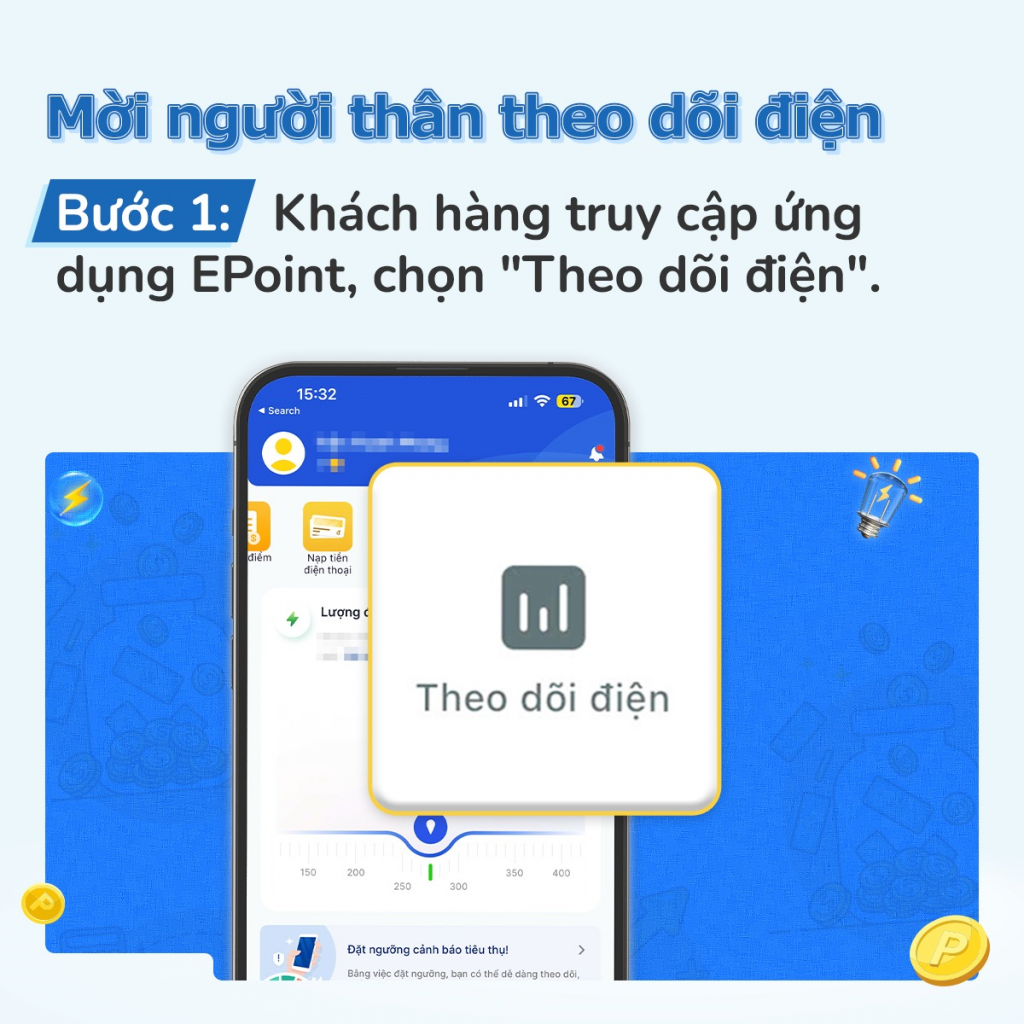 Việc theo dõi và quản lý tiêu thụ điện năng mỗi ngày không chỉ giúp tiết kiệm chi phí mà còn góp phần bảo vệ môi trường. Với EPoint, quý khách có thể dễ dàng chia sẻ hợp đồng điện của mình với người thân để cùng nhau theo dõi mức tiêu thụ điện năng, quản lý sử dụng điện hiệu quả và tiết kiệm.